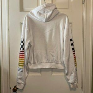 Vans White Cropped Hoodie with Color Block Racing Stripe Design