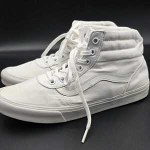 The VANS Milton Hi Women’s Lace-Up Shoes in White, size 8, are a stylish and comfortable choice for athletic activities like skateboarding. These high-top sneakers feature a lace-up closure, standard shoe width, and a rubber outsole for durability. The solid white color and blended fabric material make them versatile for both summer and spring seasons. With a trendy design and reliable performance, these VANS shoes are perfect for active women looking for a fashionable and functional footwear option.