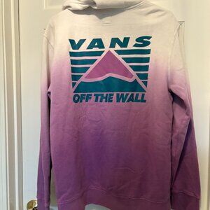 Vans Off The Walls hoodie, with mountain decal and purple to white ombre and blue/teal lettering