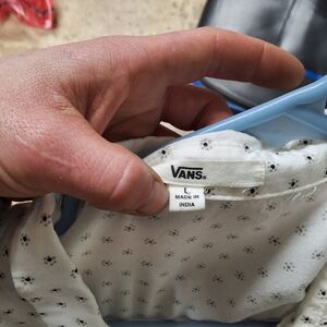 Vans white shirt featuring black dots. Ideal for casual outing.