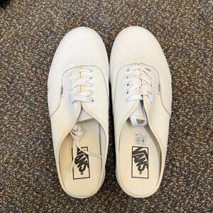 Brand new Vans low-top lace-up sneakers in white with an embossed snakeskin texture. Stylish and neutral, with a textured faux-leather look and classic rubber waffle outsole. Size Women’s 10 / Men’s 8.5 (see tag). Never worn, no box included.