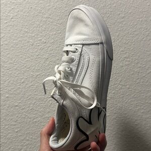 Stylish Vans sneakers. White canvas with black detailing. Mickey Mouse on the side.