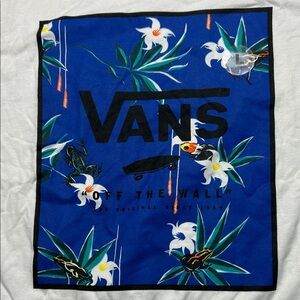 White Vans tee with a bold blue floral print. Casual and trendy.