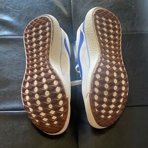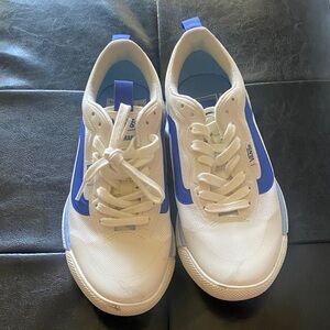 Classic Vans sneakers in white with bold blue accents. Ideal for everyday style.