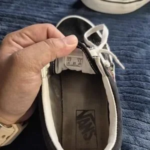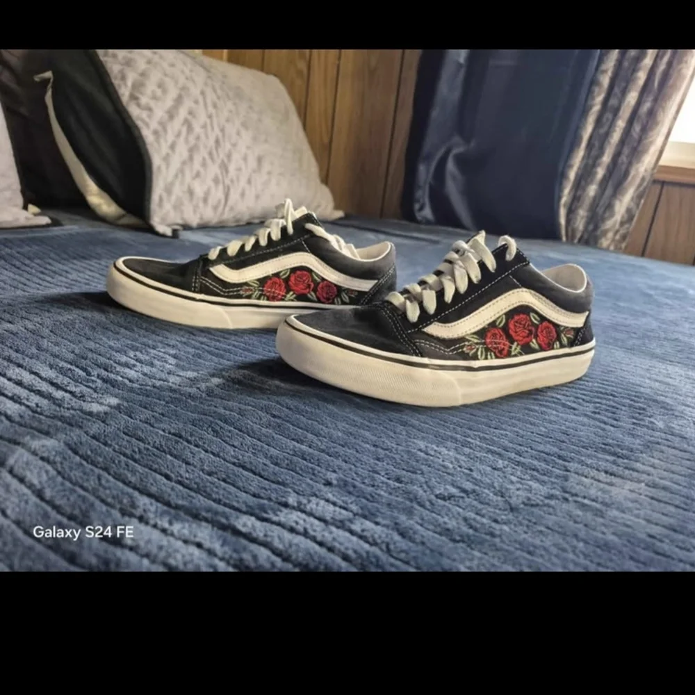 black vans with Roses. my daughter used them for less than a year and grew out of them paid 70 new. but make offer. has some wear but nothing major. they have been cleaned and ready for new owner