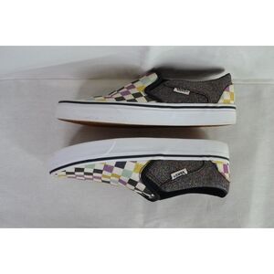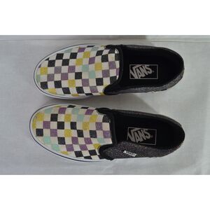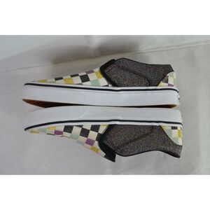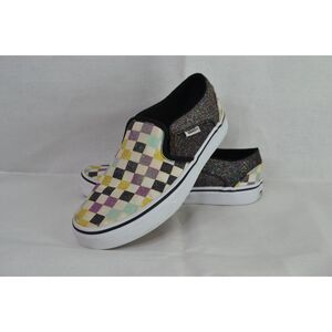 Vans Women's 6.5 Asher Glitter Checkerboard Skater Slip On Sneaker