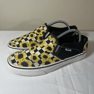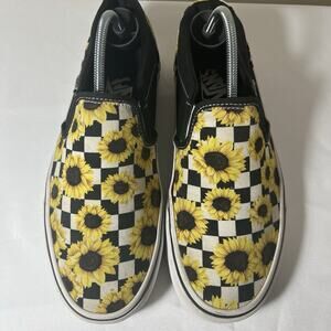 Vans Womens 8 1/2 Asher Sunflower Checker Slip On Loafer Shoes Skater Grunge