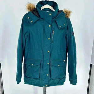 Vans Womens Cadet Parka Size M Dark Green Gold Insulated Ski Snowboard Winter