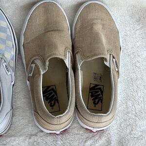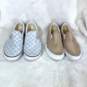 Vans Womens Checker Board Classic Slip-On Shoes Size 6.5 Blue White Tan Lot of 2