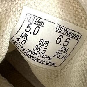 Item Condition: Pre-owned with some wear on the insole and the white rubber trim.