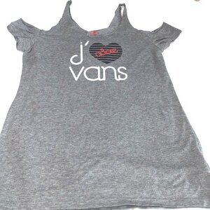 Vans Womens Gray Graphic Cutout T-Shirt Size L With "I Love Vans" Design