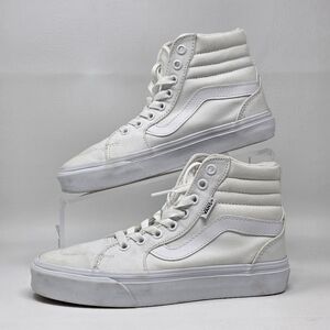 Vans Women's High Top Canvas SK-8 White Lace Up Sneaker Size 5 Pre-owned