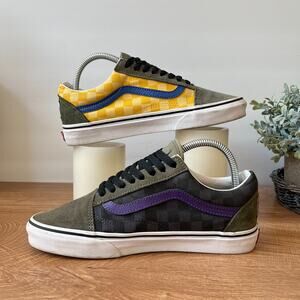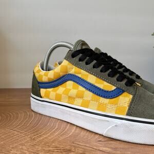 Vans Women's Old Skool 721356 Green Yellow Checker Sneaker Shoes Size 8 TWO FACE