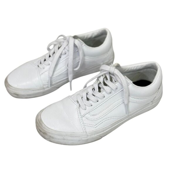 Vans Women's Old Skool Skateboard Shoe Sneaker All White Leather Low Size 6.5