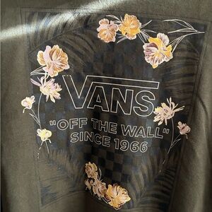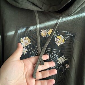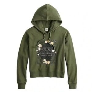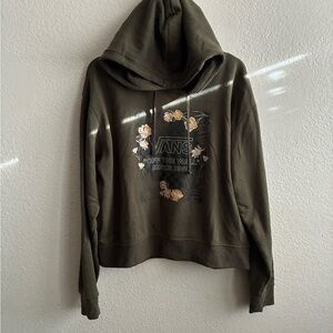 Vans Women’s Olive Green Floral Cropped Long Sleeve Hoodie Pullover Sweater L