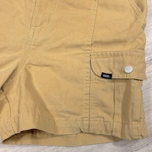 Stylish tan cargo shorts by Vans. Features multiple pockets, cargo pockets and button details.