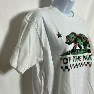 Vans Women’s Size Medium White T-Shirt Floral Bear Graphics Front Short Sleeves