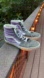 Stylish Vans high-tops in gray and lavender. Perfect for casual wear. Comfortable and trendy.