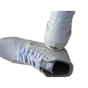 Vans Women's Sk8-Hi Premium Leather Rain Drum Striped Shoes Size 8.5 NIB. (U.S.) Vans Women's Sk8-Hi "Premium Leather" Rain Drum striped shoes. Size 8.5 Women's. (U.S.) White with grey accent striping. Brand new with the original box, these shoes are super comfortable and classic Vans! Vans Style # VN000BW7M0J. These shoes are a must have for the Vans fan & perfect for wearing all year round. The sole is made with high quality rubber for a nice cushion when you walk! Please email us with any questions. Thanks!