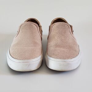 Stylish Vans slip-on sneakers. Light pink perforated upper. Classic white sole. Comfortable and trendy.
