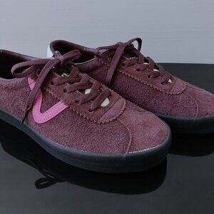 Vans Women's Sport Low Suede Sneaker in Warm & Grounded Pop Brown Color ~ The Sport Low takes inspiration from Vans 90s heritage styles to create a unique retro aesthetic. From the standout V Sidestripe to the old school logo label, this low top shoe keeps the vintage vibes coming :)