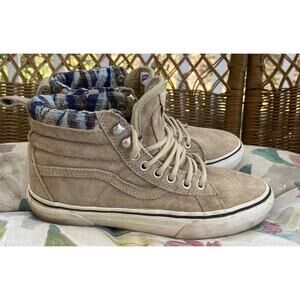 Step out in style with these Vans high-top sneakers. Featuring a versatile tan color, these shoes offer both comfort and fashion. Perfect for casual outings.