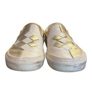 Vans Woven Leather Slip On Gold and Ivory Women’s Size 8.5