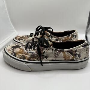 Classic vans lace up women’s sneaker. Collaboration with a SPCA multi cat pattern. Ladies size 8 1/2. Preowned in very good condition. Please see pics. Vans logo on back of heels are worn. Please consider when purchasing. These shoes are laundered and ready to wear.