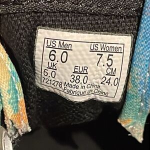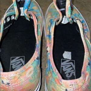 Multicolor, Nintendo Super Mario Brothers, authentic sneaker, shoes by Vans in unisex size men's 6 and women's 7.5. White laces with controller themed tips. Game over soles are in great shape. Clean insoles. Color is not as bright as a new shoe. Otherwise in great pre-owned condition.