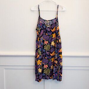Vans XL Tropical Floral Slip Dress Black Multi Color Spaghetti Strap Summer