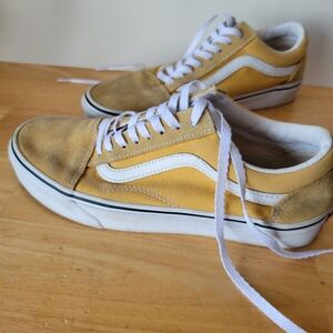 Vans Yellow Suede Sneakers with White Laces Old Skool Skate Low Mustard