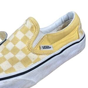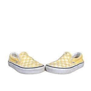 Vans Yellow White Checkered Canvas Slip On Sneakers Women Sz 5.5