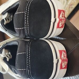 Vans 500714 black canvas/suede sneakers with white trim. Lace up style. Size Youth 5.0. Unisex Excellent pre owned condition. Smoke free and pet free home