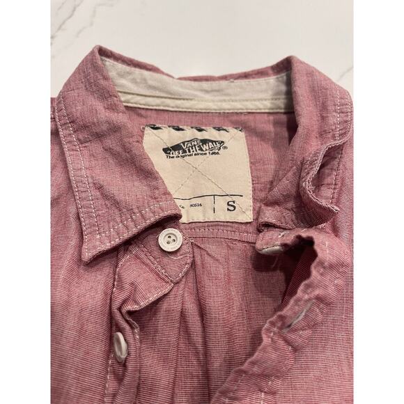 Add some casual style to your wardrobe with this red Off The Wall button-up shirt from Vans. Perfect for men who want to look stylish without sacrificing comfort, this shirt features long sleeves and is made from high-quality materials. The shirt is also available in size small, and it's sure to become a favorite in your collection of casual button-downs. Whether you're headed to work or out for a night on the town, this Vans Off The Wall shirt is a great choice for any occasion.