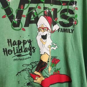 Vans family Happy Holidays Mele Kalikimaka Santa surfing tshirt men's size Large