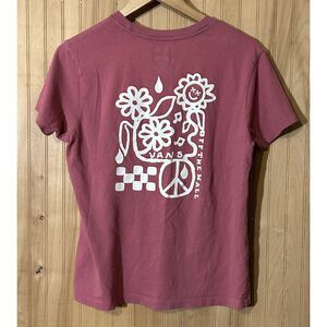 Vans off the Wall Graphic T-Shirt Pink Skateboarding Floral Peace Sign Size S