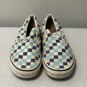 Vans off the Wall Sneakers Women’s 8.5 Men’s 7 Slip-on Dark Light Blue Check