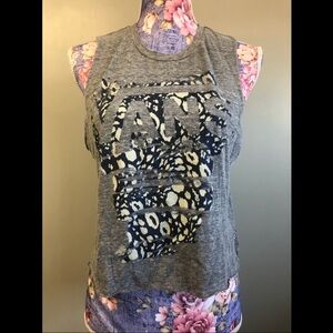 Vans off the wall muscle tee in gray with blue and white leopard print. Size xs