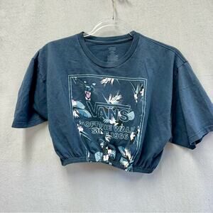 Vans panther jungle print cropped elastic band tee shirt blue/gray size large