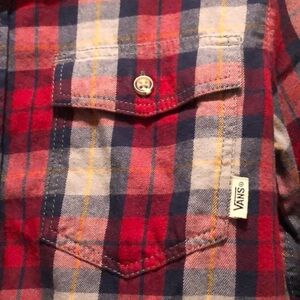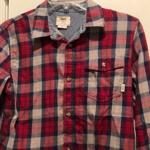 Vans Plaid button down shirt. The inside tag has been cut out with material information. Preowned good condition
