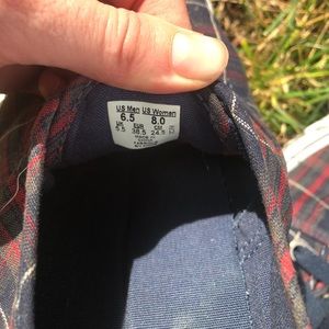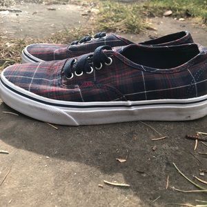 Like new condition! Red, navy, olive plaid vans. Super cool shoe for any season!