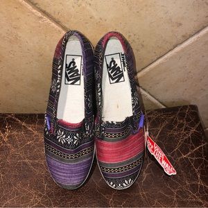 Vans slip on multicolor tribal strip shoe. Very light. Brand new with tags. Size men 5. GTD/AO