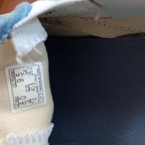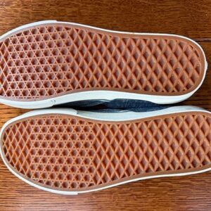Blue and white slip-on shoes Men's size: 8/ Women's size: 9.5. Gently, used: no fading on the top, but a few scuff marks on the sides. In very good shape.