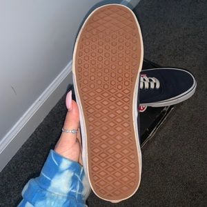 3 different color Vans Sneakers, navy blue, pink in the back, and white details. Very pretty and different! Loved them but I don’t have any room left in my closet! Only worn about 2//3 times! There’s a slight bleach stain on the inside of the right shoe. Open to any and all offers!! This is my first post so if anyone has any tips leave a comment ! 🥰🤍