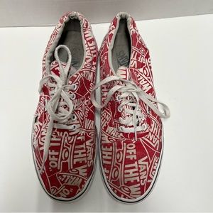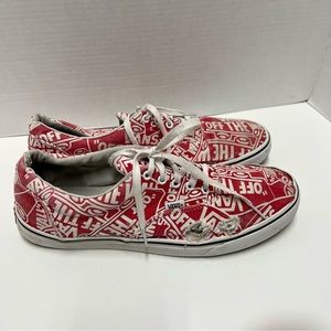 Van’s sneakers red and white size 13.0 , it has a hole on right side of the shoe, see photo for wear, white graphic off the wall