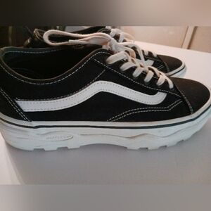 This is a very thick soled shoe that looks brand new. They are men's 7.5 or women's sz 9. These will last a very long time and they look sharp too! Off the wall