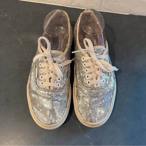 Vans sz 9 silver sequin sneakers lace-up sparkly