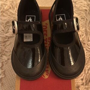 Sleek black patent sneakers with buckle detail. Comfortable and stylish for kids. Worn once.
