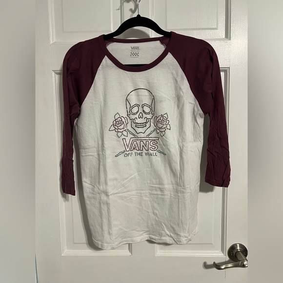 Vans top 3/4 sleeve length White and sleeves are maroon color
