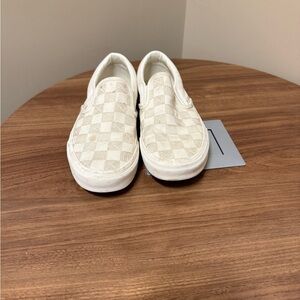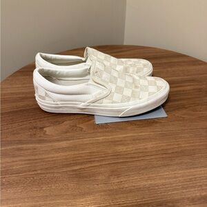 Vans white and cream checkered slip on